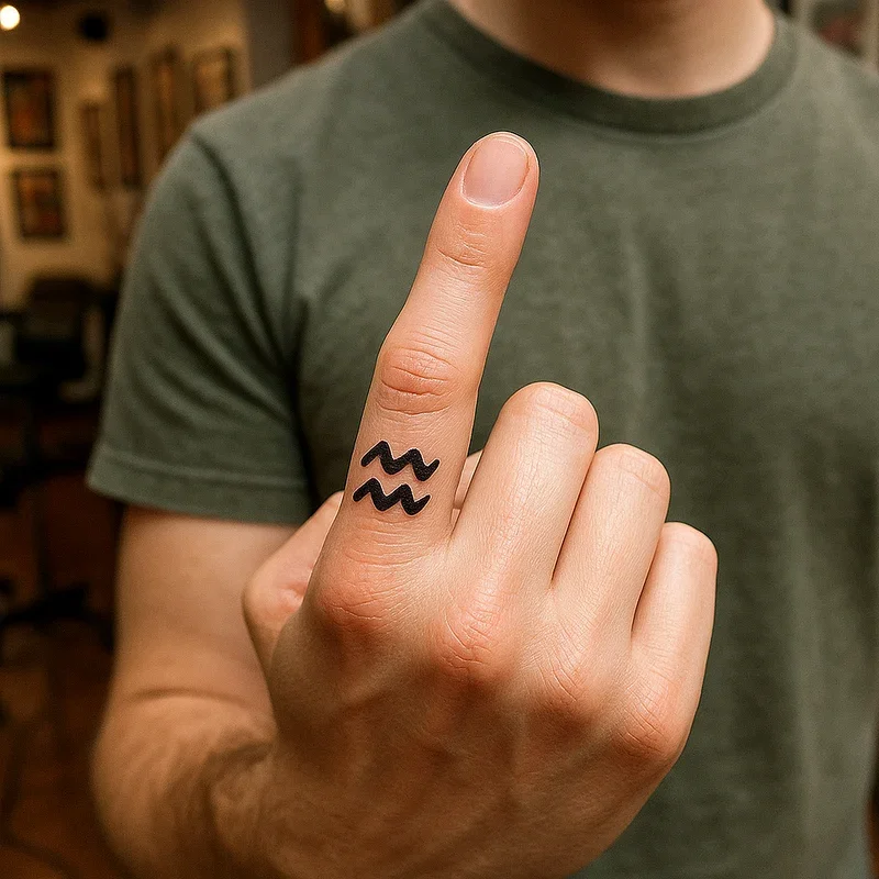 Not everyone wants a large tattoo, and finger tattoos offer a subtle way to carry your Aquarius pride everywhere you go. These micro designs might feature a tiny glyph, miniature constellation, or simplified water drops that pack meaning into minimal space. The visibility of finger tattoos makes them perfect conversation starters while remaining professional enough for most workplace environments. You can place them on the side of your finger for discretion or on top for a more visible display of your zodiac sign. Despite their small size, these tattoos require skilled artists who specialize in fine line work to ensure clarity and longevity. Consider getting matching finger tattoos with fellow Aquarians in your life, creating a subtle bond that only those who look closely will notice.