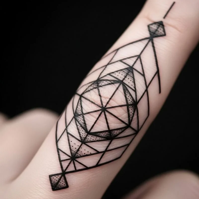 Transform your fingers into a geometry lesson with shape-based tattoos. Triangles represent strength and change, circles symbolize wholeness, and squares suggest stability. Combining shapes creates complex meanings and visual interest. These designs can be simple outlines or filled with patterns and shading. Sacred geometry enthusiasts might choose mandalas or merkabas scaled down to finger size. The clean lines of geometric tattoos age well and suit various personal styles. They're perfect for those who find beauty in mathematical precision and symbolic simplicity.