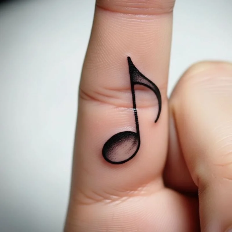 Let your fingers sing with musical note tattoos celebrating your soundtrack to life. Single notes, treble clefs, or tiny staffs with meaningful melodies all work in finger-sized formats. Musicians might choose notes from favorite compositions while music lovers pick symbols representing their passion. These designs can be simple black outlines or incorporate subtle shading for dimension. Placement on multiple fingers can create chord progressions or musical phrases. They're perfect for anyone who believes life needs a constant melody.