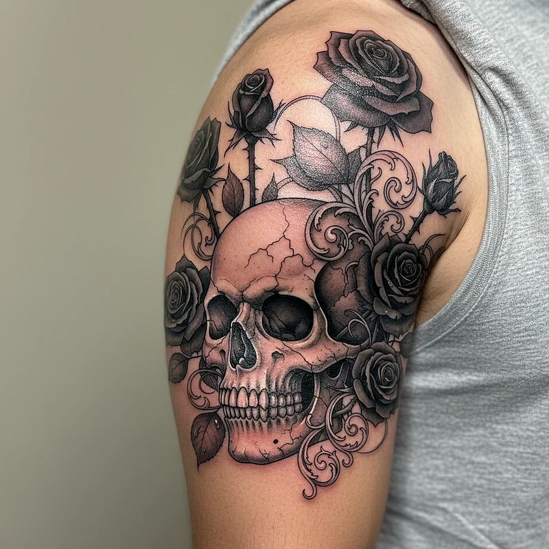 Nothing captures the Gothic aesthetic quite like the eternal contrast between life and death embodied in skull and rose tattoos. These designs merge the delicate beauty of blooming roses with the stark reality of mortality represented by skulls. Artists often incorporate intricate shading techniques to create depth, making the skull appear three-dimensional while the roses seem to bloom right off your skin. The symbolism runs deep here, representing the duality of existence and the beauty found in life's fleeting nature. You might choose to add thorny vines wrapping around the skull or include droplets of blood on the rose petals for extra dramatic effect. This classic Gothic combination works beautifully on forearms, shoulders, or as part of larger chest pieces.