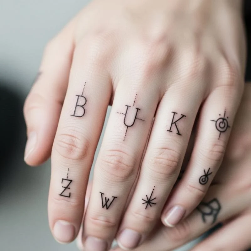 Finger lettering creates personalized messages across your knuckles and digits, transforming your hands into readable statements about your values, beliefs, or personality traits. Popular options include words like "LOVE" and "HATE," "STAY" and "TRUE," or personal mantras that hold deep meaning for you. The placement requires careful font selection to ensure readability as hands age and skin changes over time. Bold, simple fonts work better than intricate scripts for maintaining legibility. You can choose single words across knuckles, letters on individual fingers, or creative combinations that spell different words depending on hand position. These tattoos make powerful statements about identity while requiring confidence to display personal messages publicly.