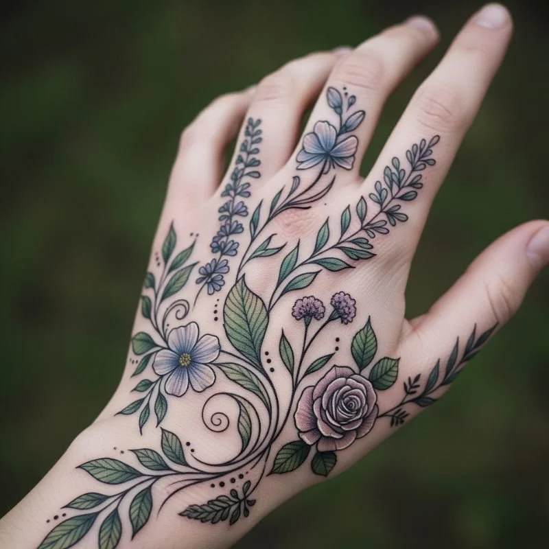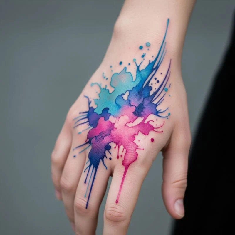 Watercolor tattoos bring artistic flair to hand placement through flowing, organic color combinations that mimic paint bleeding across canvas in spontaneous, beautiful ways. These designs work particularly well on hands because the natural movement and flexibility enhance the fluid, dynamic appearance of watercolor effects. Bright color combinations create eye-catching displays that feel artistic and contemporary, appealing to those who appreciate modern art and creative expression. The intentionally imperfect edges and color bleeds create visual interest while allowing for creative freedom in design development. However, watercolor tattoos require skilled artists who understand color theory and proper techniques for ensuring longevity and preventing premature fading on hands.