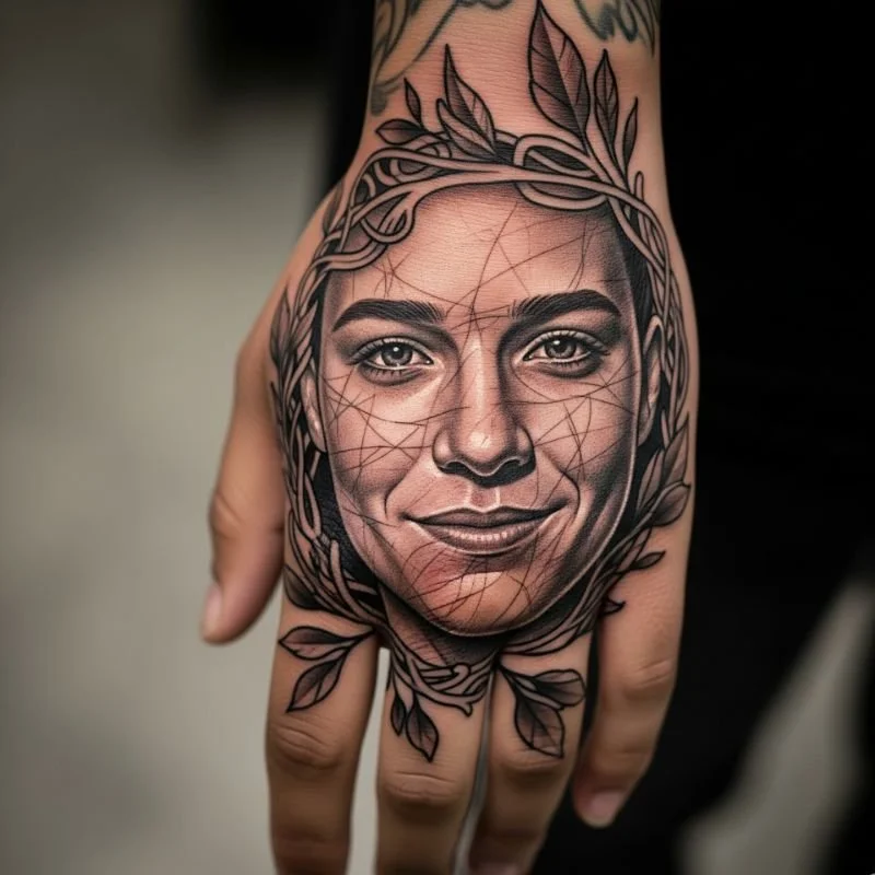 Portrait tattoos on hands create powerful tributes to loved ones, heroes, or significant figures while showcasing exceptional artistic skill and emotional commitment to meaningful imagery. These highly detailed designs require master-level artists who specialize in realistic portraiture and understand the unique challenges of hand placement. Black and gray realism works particularly well for hand portraits, creating dramatic contrast and timeless appeal that ages gracefully. You can choose family members, historical figures, fictional characters, or personal heroes who inspire and motivate you daily. The prominent placement ensures these meaningful tributes remain visible reminders of important people and values while creating conversation starters about the stories behind your choices.