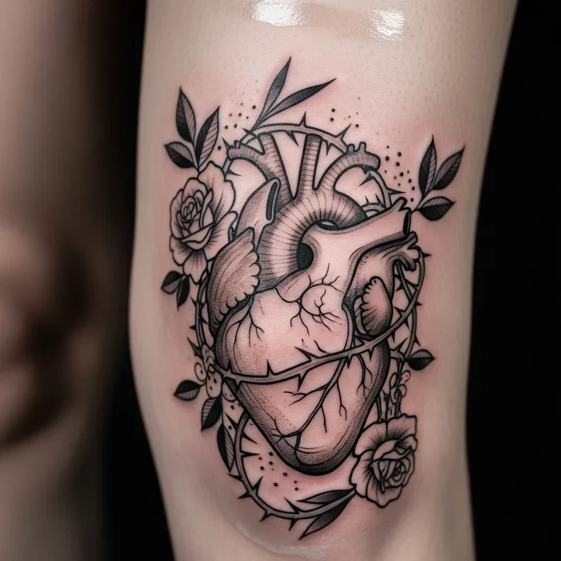Turn your knee into a glimpse beneath the skin with biomechanical tattoos that blend human anatomy with mechanical components. These designs create the illusion that you're part machine, with gears, pistons, and circuits visible through torn skin effects around your kneecap. The knee's natural movement makes these tattoos especially compelling; the mechanical parts seem to actually function as you bend and straighten your leg. Artists use careful shading and highlighting to create three-dimensional effects that make metal parts appear to gleam and shadows fall realistically. Some designs incorporate steam punk elements with brass gears and Victorian-era machinery, while others go full cyberpunk with LED-like effects and futuristic components. The contrast between organic and mechanical elements creates visual tension that captures attention. These pieces require skilled artists who understand both anatomy and mechanical design to create believable integration between flesh and metal.