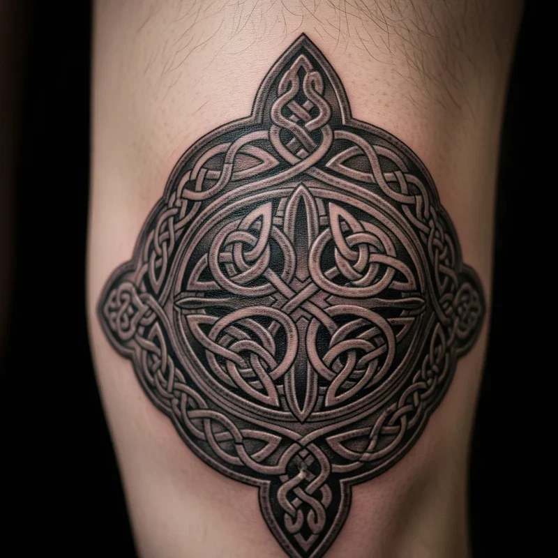 Honor your roots or simply appreciate intricate artistry with Celtic knot designs that weave endless patterns across your knee. These ancient symbols represent eternity, interconnectedness, and the infinite cycle of life through their continuous, interlocking lines. The mathematical precision required for Celtic knots makes them particularly striking on the knee, where the circular patterns can radiate from the center of your kneecap. Traditional Trinity knots, shield knots, or Dara knots each carry specific meanings while creating visually stunning effects. The key to a successful Celtic knee tattoo lies in the line consistency; every strand must flow smoothly into the next without breaks or inconsistencies. Black ink creates classic contrast, though some add subtle color accents in greens or blues to honor Irish and Scottish traditions. These designs age exceptionally well since they rely on bold, clear lines rather than fine details that might blur over time.