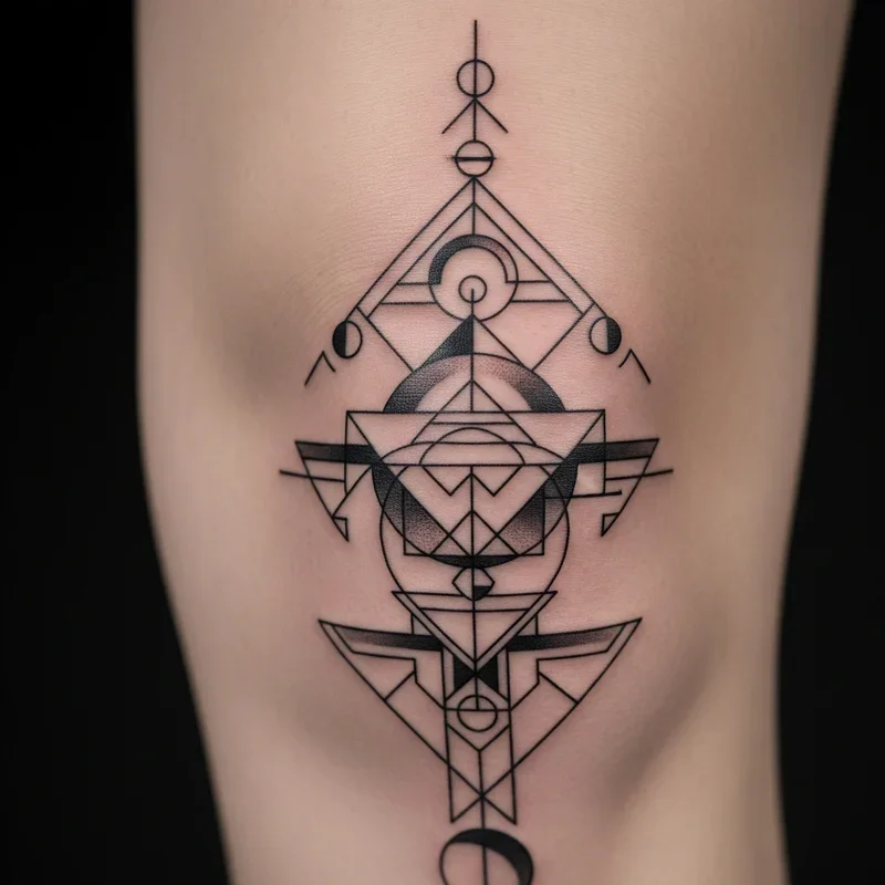 Clean lines, precise angles, and mathematical perfection define geometric knee tattoos that appeal to the contemporary art lover. These designs transform your knee into a living piece of modern art, using shapes like triangles, hexagons, and diamonds to create striking visual effects. The key to a successful geometric knee tattoo lies in the precision; every line must be perfectly straight, every angle exactly measured. Artists often use dotwork or linework techniques to build complex patterns from simple elements. Some designs play with optical illusions, creating 3D effects that seem to lift off your skin. Others embrace negative space, using your natural skin tone as part of the design. The result? A sophisticated tattoo that looks equally at home in an art gallery or on your body. These pieces age exceptionally well since they rely on clean lines rather than heavy shading.