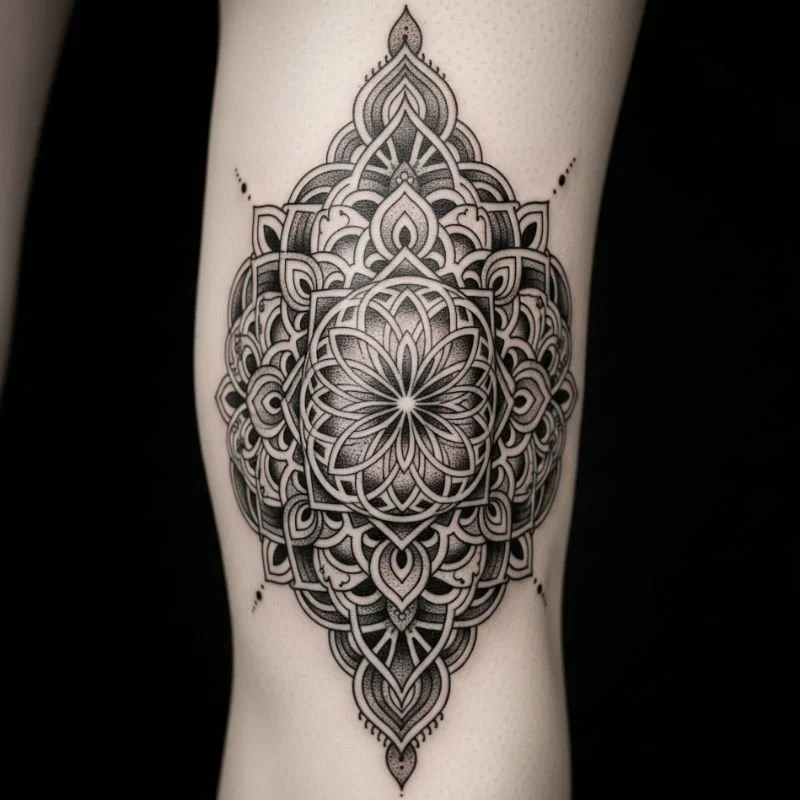 Transform your knee into a focal point with a sacred geometry design that radiates outward. The knee's unique shape and movement create dynamic visual effects as geometric patterns shift with each step. Designs might include the Flower of Life, Metatron's Cube, or custom geometric combinations that hold personal significance. The placement requires commitment but results in a conversation-starting piece that bridges ancient wisdom with contemporary body art. It's both a physical and spiritual journey, marking your dedication to meaningful ink.