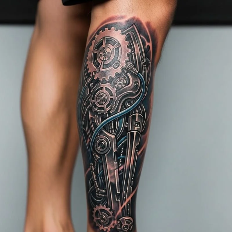 4. Biomechanical Shin Tattoo