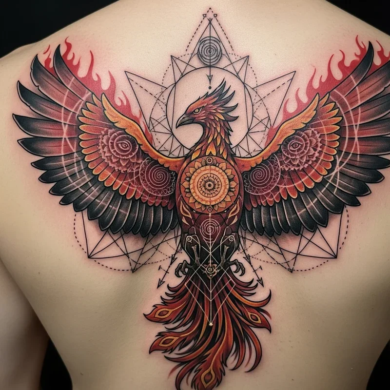 Transform the ancient phoenix into a modern masterpiece by breaking it down into triangles, hexagons, and precise angles that create a stunning visual puzzle. Geometric phoenix tattoos appeal to those who find beauty in mathematics and order, representing calculated rebirth rather than chaotic transformation. The design often features one half in geometric patterns while the other remains organic, symbolizing the balance between logic and emotion in your recovery journey. Sacred geometry elements like the Fibonacci sequence or golden ratio can be incorporated, adding deeper spiritual meaning. Dotwork and linework techniques create texture and depth without traditional shading. This style ages exceptionally well since it relies on clean lines rather than color gradients. The angular nature of geometric designs creates a sense of strength and stability, perfect for representing structured personal growth. Some designs include mandala patterns within the phoenix, combining Eastern spirituality with Western symbolism.