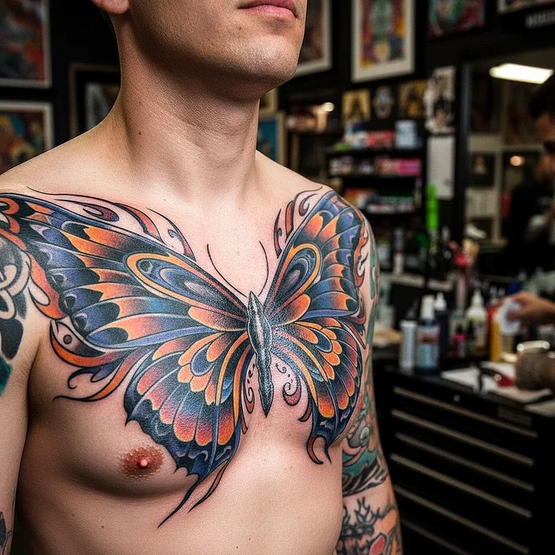 Butterflies embody metamorphosis, making them particularly meaningful for covering scars that mark your own transformation, especially those from gender affirmation or breast cancer surgeries. The butterfly's wings can spread symmetrically across chest scars, with the body positioned centrally to create balance and beauty from surgical precision. The natural symmetry of butterflies works perfectly with the often symmetrical placement of chest scars, while wing patterns can be customized to incorporate scar textures into the design. Choose monarch butterflies for their strength in migration, or go abstract with watercolor wings that celebrate your unique journey. Multiple butterflies can represent different stages of healing and growth. This design literally shows your emergence from a cocoon of challenge into something beautiful, free, and completely transformed through your experiences.