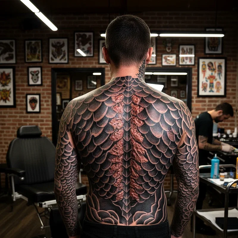 Why hide raised scar tissue when you can transform it into dragon scales that make you look absolutely legendary? Dragons represent power, protection, and wisdom across cultures, and their scaled texture naturally incorporates raised scars into the design as intentional textural elements. Asian dragon designs can wind around limbs with scars becoming part of the creature's armored hide, while Western dragons might spread wings across back scars with incredible detail. The raised areas of scar tissue actually enhance the three-dimensional quality of scales, making the tattoo appear more realistic and dynamic. Color choices from traditional blacks and grays to vibrant fantasy hues let you customize your dragon's appearance. This bold choice announces your warrior spirit and transforms what might feel like battle damage into actual armor that tells your legendary story.