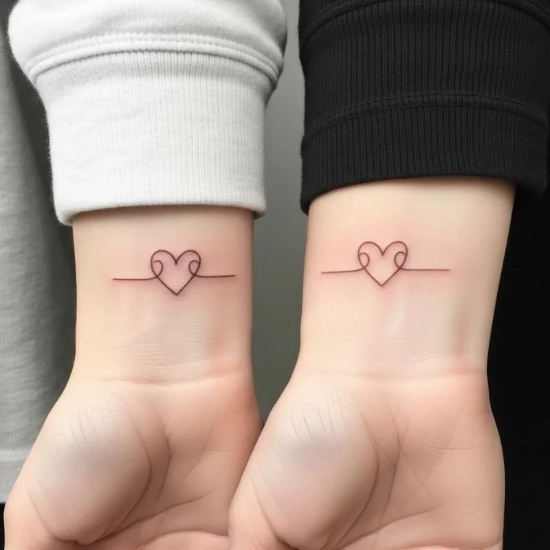 Simple heart tattoos capture the essence of sisterly love through timeless symbolism that has represented affection across cultures for centuries. These elegant designs offer maximum emotional impact with minimal artwork, making them perfect for sisters who prefer subtle expressions of their bond over elaborate statements. Variations include filled hearts for sisters who wear emotions openly and outline hearts for those who keep feelings closer to their hearts. Different sizes can acknowledge age differences while maintaining the shared theme, allowing for personalization within unity. Popular placements include wrists for daily reminders that catch your eye throughout the day, ankles for private declarations between sisters, or collarbones for elegant statements that can be displayed or concealed as desired.
