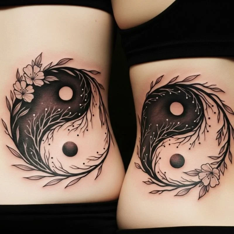 The yin and yang symbol perfectly represents sister relationships through complementary opposites creating complete harmony. Originating from ancient Chinese philosophy, this design celebrates how differences make relationships stronger rather than weaker. In sisterhood context, these dualities might manifest as introvert and extrovert, dreamer and planner, or any personality contrasts creating perfect balance when combined. The design's beauty lies in philosophical depth paired with visual simplicity, with interlocking curves creating satisfying, complete circles suggesting eternal connection. Small dots of opposing colors within each half remind us that sisters carry pieces of each other. Artistic interpretations can honor traditional symbolism while adding personal meaning, from classic black and white versions to feminine touches like floral details or cosmic elements.