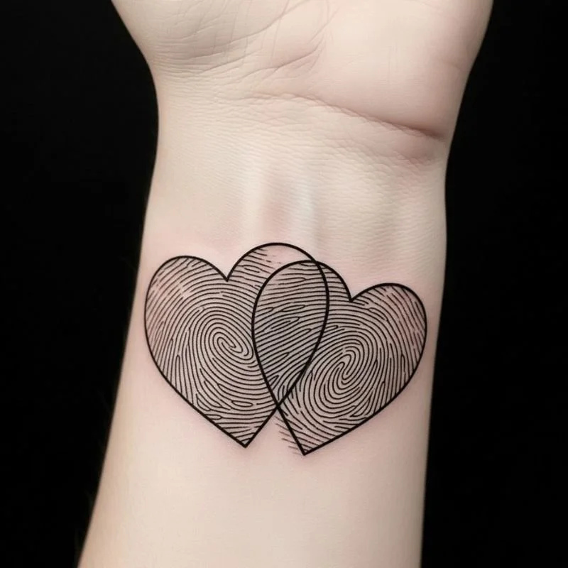 Fingerprint heart tattoos offer truly unique designs that no one else could replicate, expressing individual bonds through ultimate personalization. Since no two fingerprints are identical, this design becomes the ultimate expression of your unique connection. The creation process requires skilled artists working from clear fingerprint impressions digitally manipulated into heart shapes while maintaining ridge patterns. Symbolism combines hearts representing love with fingerprints representing individual identity, creating designs that say "your unique existence is the shape of love in my life." This recognizes that your sister's individual qualities are what you love most. The emotional impact of seeing your sister's actual fingerprint transformed into a love symbol creates connections transcending typical tattoo sentimentality.