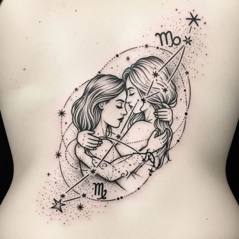 Constellation tattoos create cosmic connections perfect for sisters interested in astrology or astronomy. These designs represent actual star arrangements at births, astrological personality traits, and beautiful patterns resembling celestial jewelry. Design execution varies from side-by-side constellations celebrating individual identities to overlapping constellations suggesting linked destinies. Enhancement elements include crescent moons, shooting stars, or meaningful coordinates. Minimalist approaches use simple dots and lines for accurate star maps, while elaborate versions include detailed star bursts and cosmic backgrounds. Glow-in-the-dark ink adds magical touches. The cosmic theme appeals to sisters who find meaning in the universe's vastness while celebrating their unique place within it.