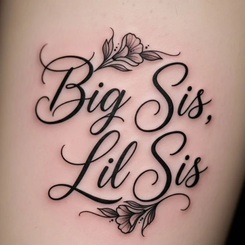 This straightforward design declares your roles and relationship pride through honest simplicity. Typography choice determines personality, with cursive script adding femininity, typewriter fonts bringing vintage nostalgia, and hand-lettered styles adding uniqueness. Font choices can reflect individual personalities within the relationship, with big sisters choosing bold, confident lettering and little sisters opting for delicate script. Enhancement options include small hearts, arrows, actual names, or personal elements like birth flowers or zodiac symbols. Placement affects the statement's impact, with forearms allowing easy display, ankles offering private declarations, and shoulder blades creating beautiful surprises. This design appeals to sisters who prefer direct expressions over complex symbolism.