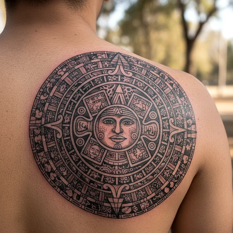 The Aztec sun stone transforms ancient Mesoamerican astronomy and mythology into powerful body art that connects wearers to pre-Columbian wisdom and artistry. This intricate design features concentric circles filled with symbols representing days, deities, and cosmic cycles, with the sun god Tonatiuh often depicted at the center with his tongue extended. The level of detail in authentic Aztec sun tattoos requires significant space and an artist familiar with the cultural symbolism to ensure accuracy and respect. You can opt for the complete calendar or focus on specific elements that resonate with your personal journey, perhaps incorporating modern touches while maintaining the design's cultural integrity. These pieces work exceptionally well as large back or chest tattoos where every intricate detail can be properly showcased.