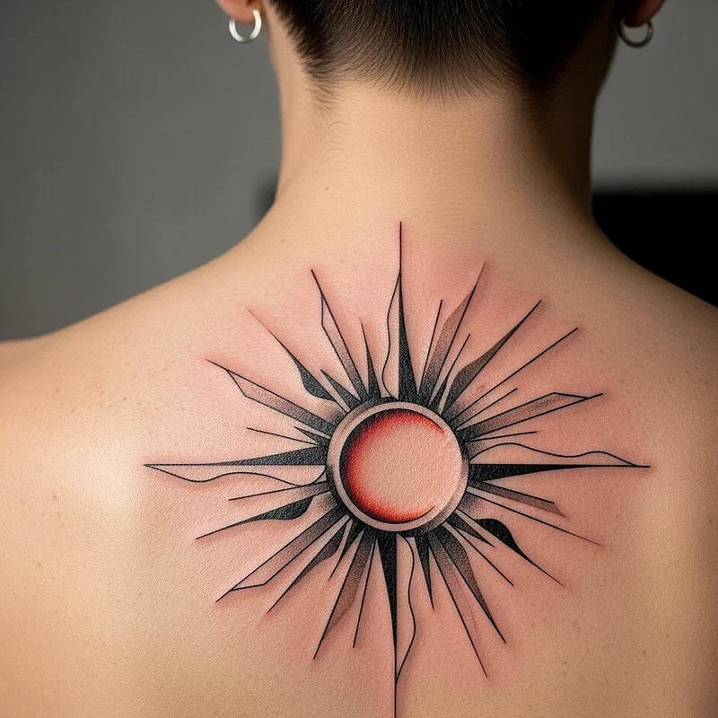 Abstract sun tattoos break free from traditional representations, using unconventional shapes, unexpected colors, and experimental techniques to reimagine solar imagery for contemporary tastes. These designs might fragment the sun into geometric shards, blend it with surreal elements, or deconstruct it into pure color and motion. Think splatter effects suggesting solar flares, negative space creating implied rays, or mixed media approaches combining realistic and abstract elements within a single piece. The freedom of abstract art allows for deeply personal interpretations that might represent your unique relationship with solar energy, personal growth, or life philosophy. These pieces often become conversation starters, inviting viewers to find their own meaning in the design while showcasing your appreciation for modern artistic expression.
