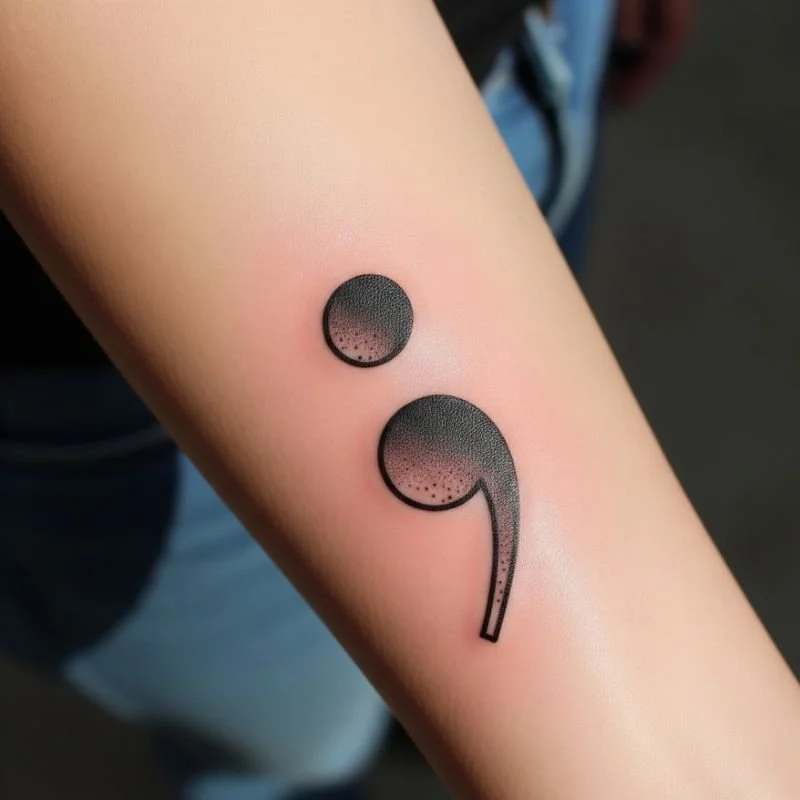 Sometimes the smallest symbols carry the heaviest meanings. The semicolon tattoo has become a powerful emblem for mental health awareness and suicide prevention. Why a semicolon? Because when an author could've ended a sentence but chose to continue instead. Your story isn't over; you're the author choosing to keep writing. This tiny punctuation mark creates instant connection with others who understand the struggle. Many people enhance their semicolon with butterflies, hearts, or incorporate it into larger designs. It's a quiet declaration that you've chosen to persist when giving up seemed easier.
