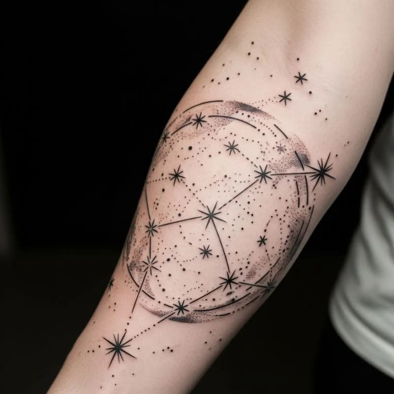 What were the stars saying when you arrived? Constellation tattoos map the sky from meaningful moments, creating cosmic connections to specific times. Birth constellations are popular, but any significant date works: weddings, deaths, achievements. These celestial maps can be scientifically accurate or artistically interpreted. Connect the stars with fine lines or let them float freely. Add zodiac symbols, moon phases, or coordinates for extra personalization. Your constellation becomes a permanent reminder that you're part of something bigger, that the universe aligned to create specific moments in your life worth remembering forever under your skin.