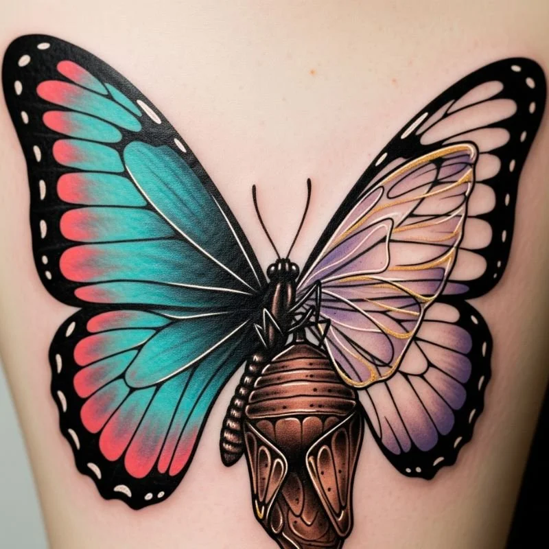 From crawling to flying? Now that's a glow-up worth commemorating! Butterfly tattoos perfectly capture life's transformative moments. These delicate creatures spend time in darkness before emerging completely changed, resonating with anyone who's undergone personal metamorphosis. Realistic butterflies showcase nature's artistry, while watercolor styles add dreamlike quality. Some people document their journey with caterpillar-to-butterfly progression pieces. Monarch butterflies can honor loved ones who've passed, as many cultures see them as visiting souls. Your butterfly announces that change didn't break you; it gave you wings. It's ideal for marking new beginnings or celebrating who you've become.