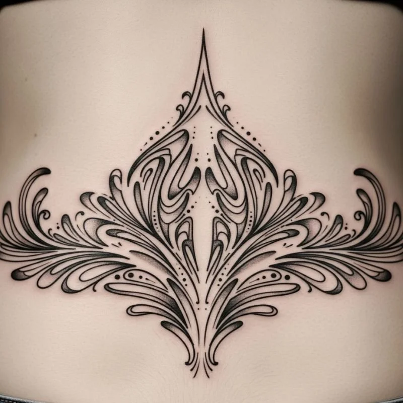 Abstract line art transforms the lower back into a canvas for pure artistic expression, where meaning is personal and beauty lies in simplicity. These designs use continuous lines, geometric shapes, and negative space to create compositions that are uniquely yours. Think Picasso-inspired faces drawn with single lines, abstract representations of landscapes, or purely decorative patterns that please the eye. The freedom of abstract art means no two tattoos are alike. Work with your artist to create custom designs that flow with your body's natural lines. Incorporate meaningful elements subtly: a line that echoes a mountain range from your favorite hiking spot, shapes that suggest but don't define important symbols. These tattoos age beautifully because their simplicity remains timeless. Add dot work or subtle shading for depth, or keep it clean with bold, confident lines.