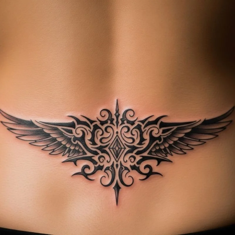 Today's tribal-inspired lower back tattoos take traditional patterns and reimagine them with contemporary flair. These aren't your typical Y2K tribal designs; modern interpretations blend cultural elements respectfully with personal style. Think Polynesian patterns that tell stories of strength and journey, Native American-inspired feathers and dreamcatchers, or African geometric patterns that celebrate heritage. The key is working with artists who understand cultural significance and can create designs that honor traditions while making them uniquely yours. Bold black lines create striking silhouettes that complement the lower back's natural curves. Add negative space for breathing room or incorporate dot work for texture. These designs often extend slightly onto the hips or up the spine, creating a larger piece that feels integrated with your body rather than simply placed upon it.