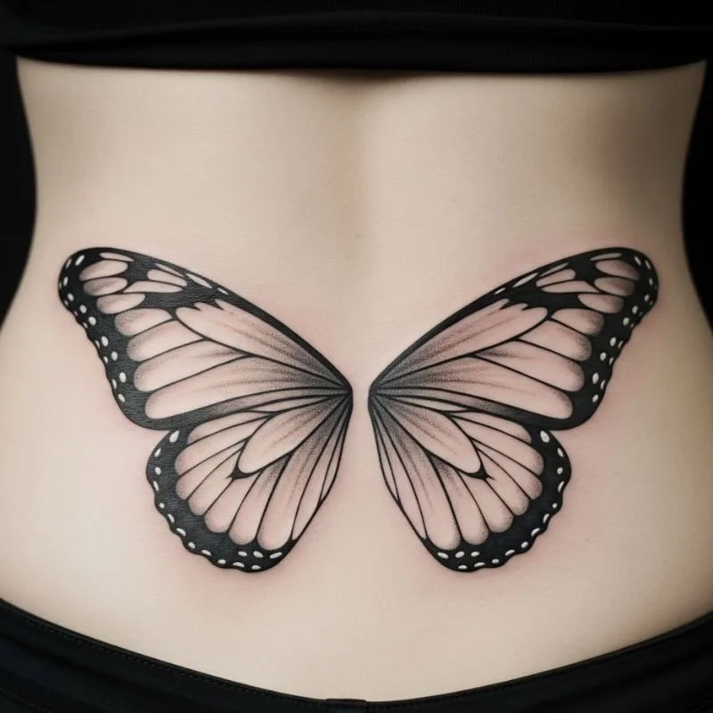 Butterfly tattoos on the lower back have evolved far beyond their early 2000s reputation, becoming sophisticated works of art that celebrate transformation and freedom. Modern designs feature realistic wing patterns with incredible detail, from monarch butterflies with their iconic orange and black to ethereal luna moths with their pale green hues. The symmetrical nature of butterfly wings makes them perfect for this placement, creating balance across your lower back. Some designs show a single butterfly with wings spread wide, while others feature multiple butterflies in flight, creating movement and energy. Add flowers, vines, or geometric elements to ground the design. Watercolor techniques bring these winged beauties to life with splashes of color that look painted on. For a unique twist, consider half-realistic, half-geometric butterflies that blend nature with modern art.